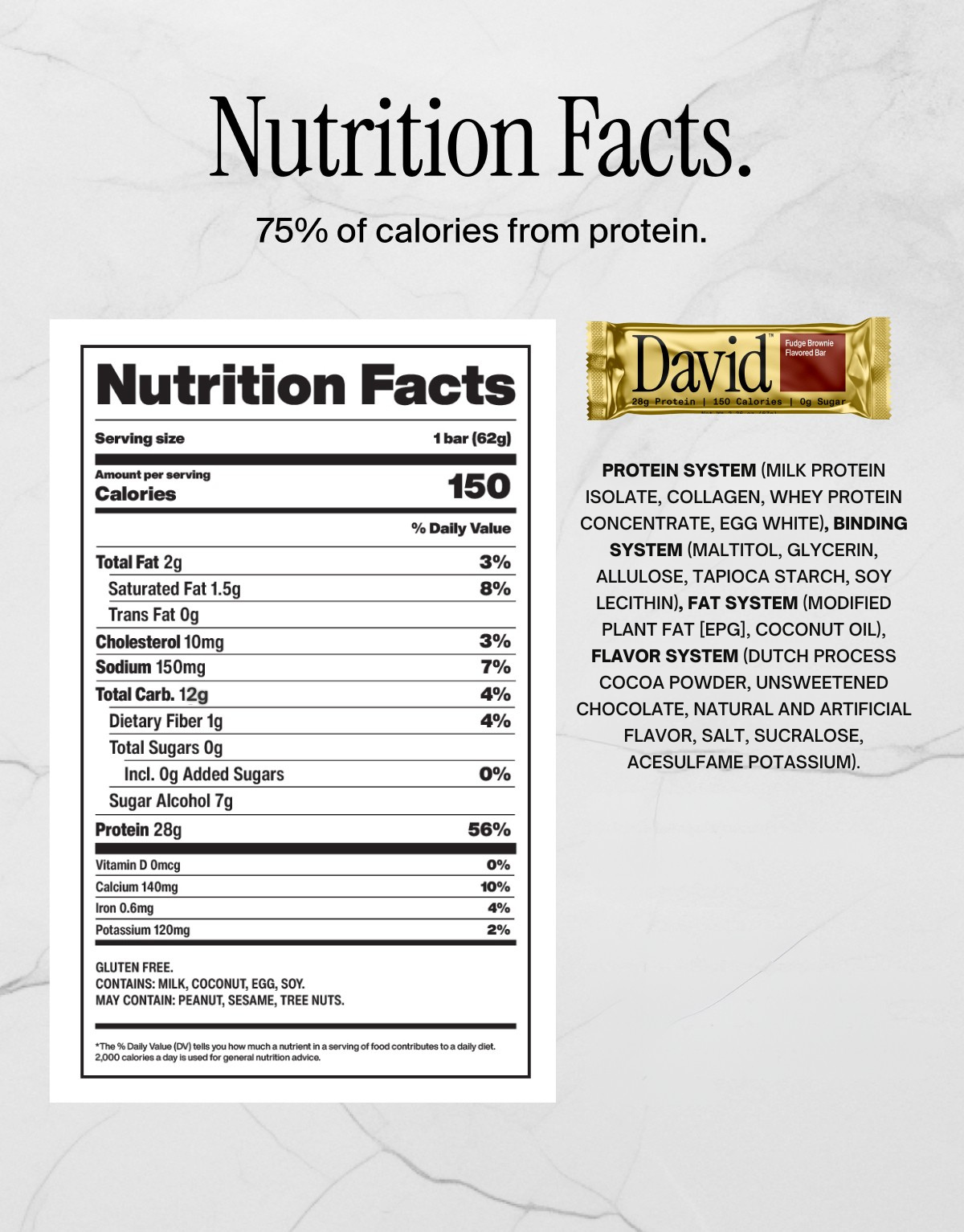 “I feel as if every week, I am completing another 5-star review on David bars because I am ordering a different flavor. The peanut butter chocolate chunk is my new ‘go-to’ flavor.”