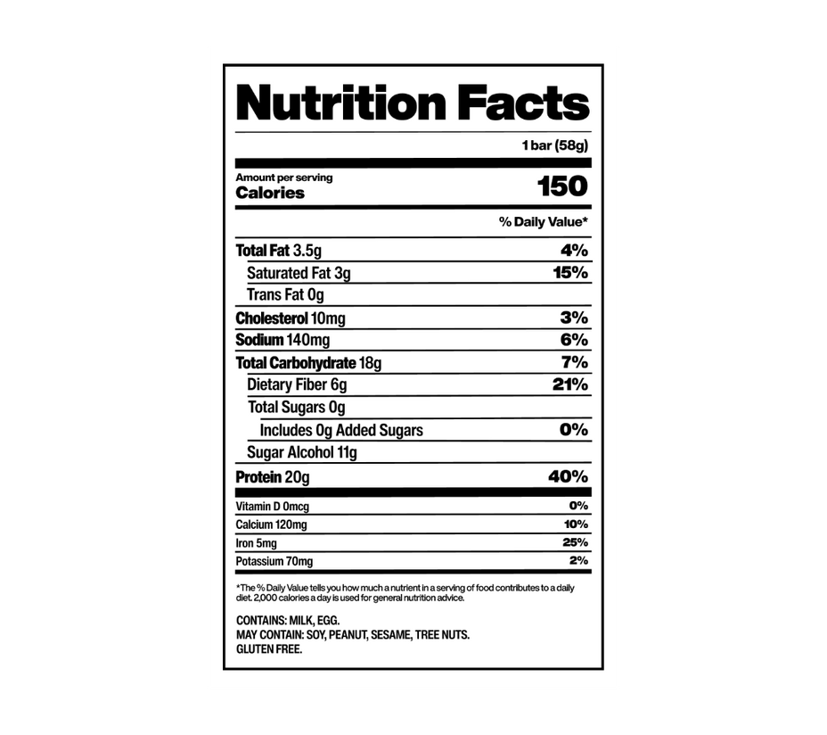 David Gold bars contain 150 calories, 0g sugar, 28g protein and 56% DV protein per62g bar; Built Puff bars contain 140-160 calories, 6-8g sugar,15-17g protein, and 30-34% DV protein per 40-43g bar; Barebells Original Protein Bars contain 200-210 calories, 1-2g sugar, 20g protein, and 32% DV protein per 55g bar; and Quest Nutrition Protein Bars contain 150-200, 1gsugar, 18-21g protein, and 36-42% DV protein per 52-60g bar.