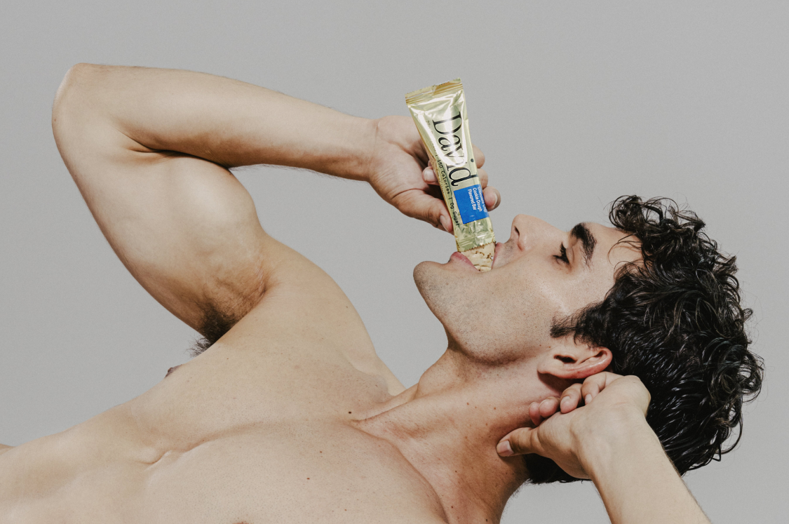 “Deliciously chewy with a satisfying crunch, this protein bar delivers”