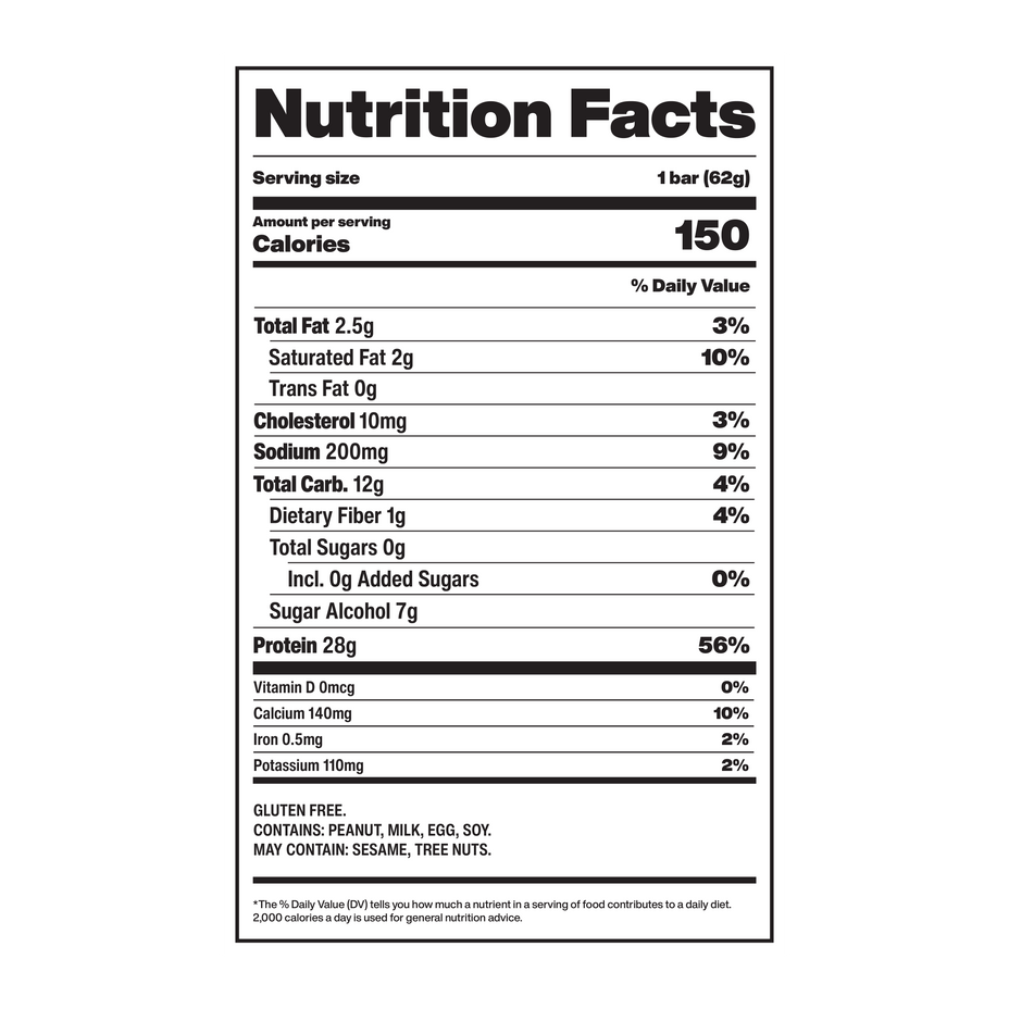 David has 28g of protein, 150 calories, and 0g of sugar.